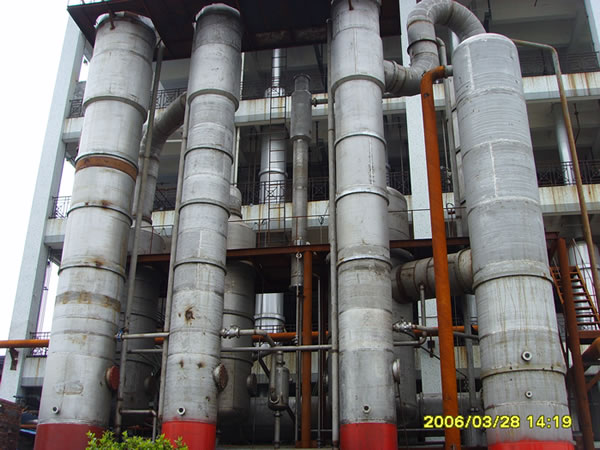 公司還涉足高濃度污水處理行業(yè)。經(jīng)過公司研發(fā)人員的努力,開發(fā)出了YBJXH型強制降膜循環(huán)多效、TVR、MVR蒸發(fā)器用于處理工業(yè)污水,并在聯(lián)邦制藥成都和內(nèi)蒙古公司、印度阿拉濱度、煙臺萬潤精細化工等應(yīng)用成功。另在2002年山東魯洲集團河南公司成功利用管束干燥機的廢熱制造了18噸廢熱蒸發(fā)器,用至現(xiàn)在。其中聯(lián)邦制藥成都公司選用的污水處理蒸發(fā)器有:50噸一套,35噸2套,12噸一套;聯(lián)邦制藥內(nèi)蒙古公司選用50噸污水處理蒸發(fā)器共3套;液糖車間YBJM30噸四效降膜蒸發(fā)器2套;YBJM20噸四效降膜蒸發(fā)器2套。印度阿拉濱度25噸1套、15噸3套、10噸1套、5噸1套;2.5噸8套等等。